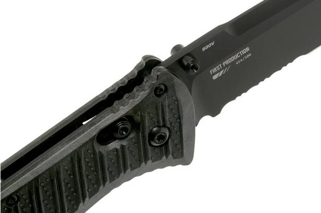 The Benchmade Presidio II is a large pocket knife, designed for the more demanding tasks. Large blade, substantial handle, optimal ergonomics: this pocket knife inspires confidence. The blade is made from CPM S30V steel. An American metallurgical type of powder steel. Sounds difficult, but it is important for you to know that this is high-tech steel with excellent properties for a pocket knife. Good sharpness retention, excellent rust resistance and pretty good to sharpen yourself.