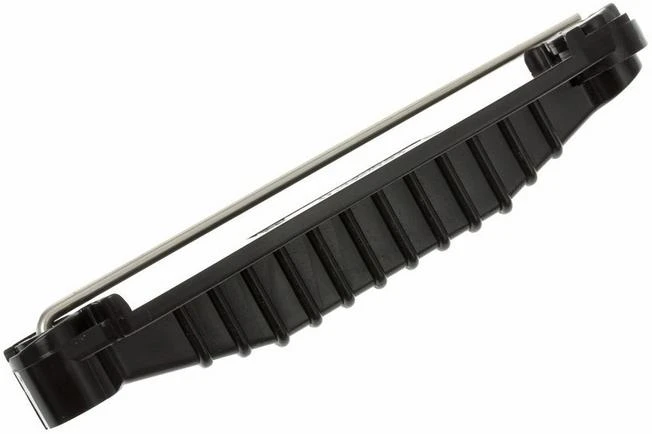 The compact briefcase of the DMT Aligner ProKit sharpening system contains all parts necessary to quickly and easily sharpen your knife into a razor sharp condition. The heart of the set consists of three diamond sharpening stones. The colour in the well-known DMT-circled pattern shows which grain size it concerns. Further the set contains a conical file that can be used for sharpening serrated knives.