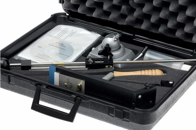 The Edge Pro Professional sharpening system is a professional sharpening system that comes complete, in a sturdy carrying case. The Professional Kits are extremely well made and optimized for intensive use. The principle of sharpening is similar to the Apex models. The differences can be found for example in the materials used and the options for sharpening angles that you can choose. The sharpening angle is adjustable between 13 and 25 degrees with colored marked dots for the most common angles.
