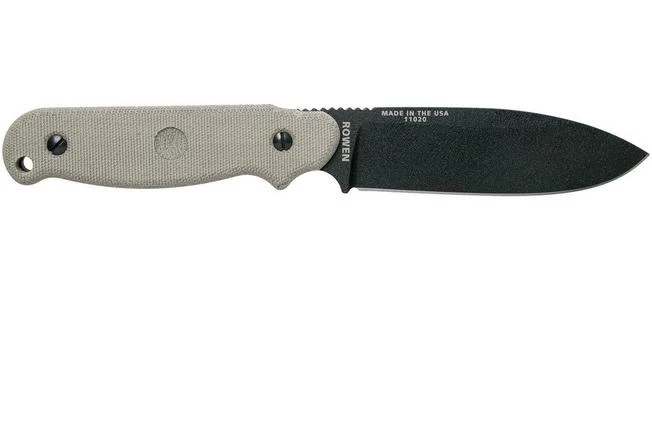 The ESEE Laser Strike is the big brother of Model 4. He is slightly larger which gives your hand a little more space. The blade is made of 1095 carbon steel. The extremely durable powder coating on the blade helps protect against the larger rust susceptibility known to carbon steel. The great performance of the steel guarantee a life long pleasure. The full tang blade features a micarta handle. This handle feels somewhat rough, which is good for grip and comfort.