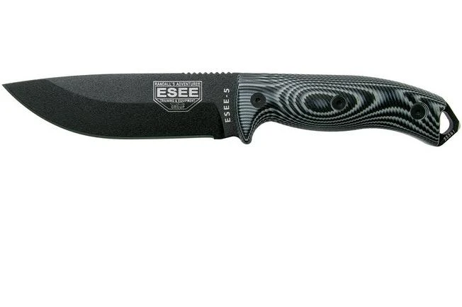 ESEE Model 5 Black Blade 3D Grey-Black G10 Survival Knife 5PB-002 Kydex Sheath + Clip Plate